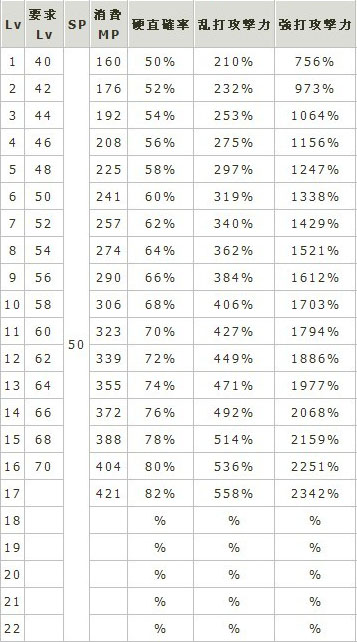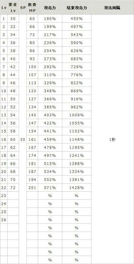点击查看详情可以浏览技能详细数据技能等级属性: