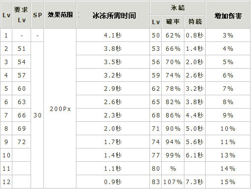 冰冻敌人并对敌人进行龙卷风般的冰柱攻击。对阵中的敌人有吸附效果。