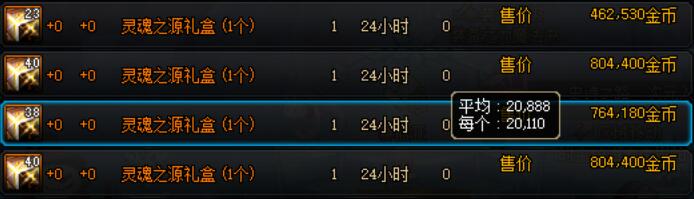 售价888点券,可稳定获得2023个金绿柱石与23个灵魂之源,以拍卖行的行情来看,福袋价值约为2023*4600+23*20000=9765800金币,在金币寄售中价值约2000代币券,福袋售价为所获道具价值的44%。
