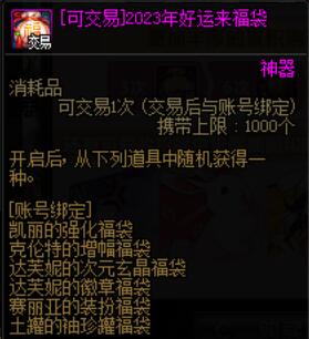 结合多买多送中,购买3个福袋后获赠的[可交易]2023年好运来福袋, 追求性价比的玩家建议购买3个福袋,将多买多送的[可交易]2023年好运来福袋出售回血,福袋建议购买招福兔希曼的福袋与任意2款所需的福袋。