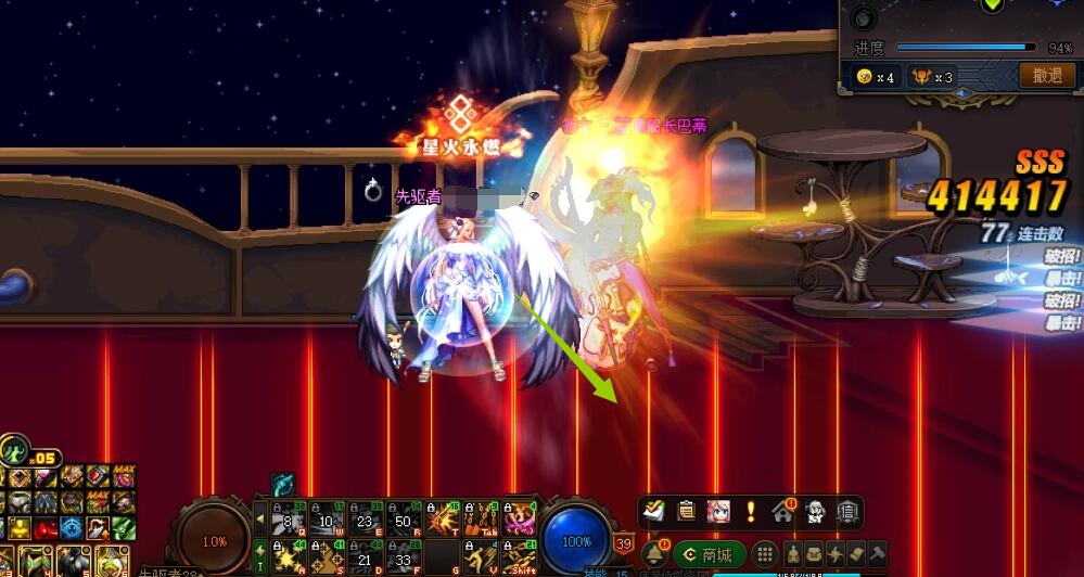 巴蒂会召唤全屏的竖向攻击,玩家注意跳跃躲避。
