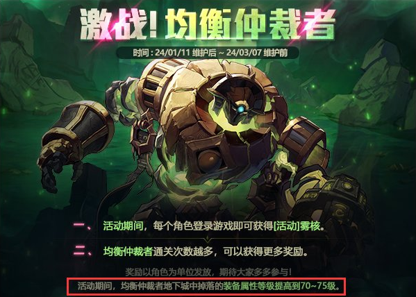 11号更新后,活动期间,深渊产出装备的词条还会进一步提升(LV70-75),除了提升装备词条等级外,搭配活动送出的大量雾核深渊票也能较低消耗。