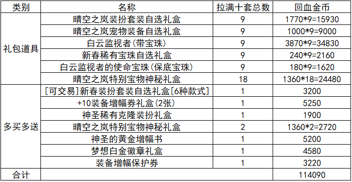 本次新春礼包带着全新的属性登录正式服了,想要入手多套礼包的小伙伴最为关心的便是回血道具了。下面笔者为大家整理一下回血道具,并计算一下回血情况,帮助小伙伴们快速入手。