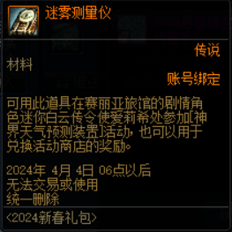 购买新春礼包并且打开之后,可以固定获得两个迷雾测量仪。