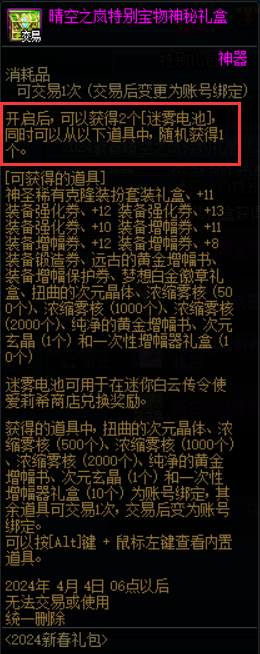 打开晴空之岚特别宝物神秘礼盒,可以固定获得2个迷雾电池。