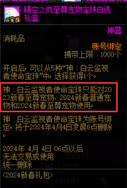 最后要提醒小伙伴们,至尊宠物宝珠以及至尊称号宝珠只能用在2024至尊宠物和称号、2024解封的普通称号和普通宠物、2023至尊宠物和至尊称号上,不能用在未解封的普通称号上,冒险家们切记不要兑换来作为回血道具。