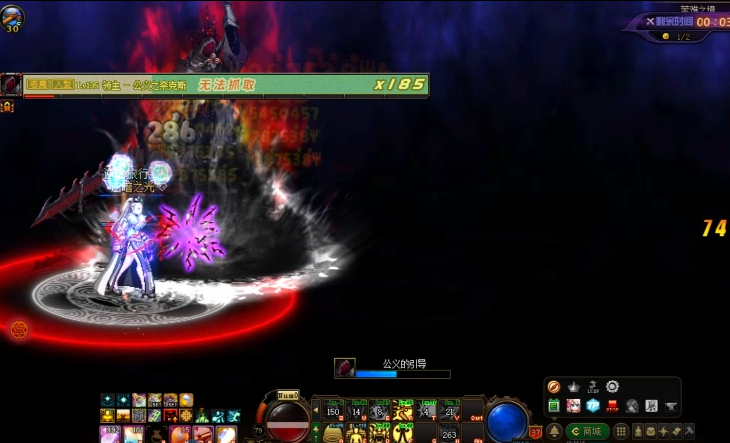 当出现“公义的引导”,我们根据自身光圈是白色还是黑色,外圈红色就站白BOSS身边,外圈白色就站黑BOSS身边,当BOSS被砸到3次以后,即可破防。