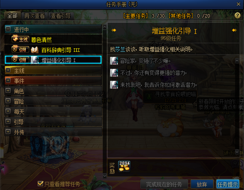 PS:每完成该选项下的指引任务后,都有对应的奖励。除了大量复活币以外,还会提供各种药水、副本门票等奖励,其中还包括了当前版本最需要的高级地下城入场门票等等。