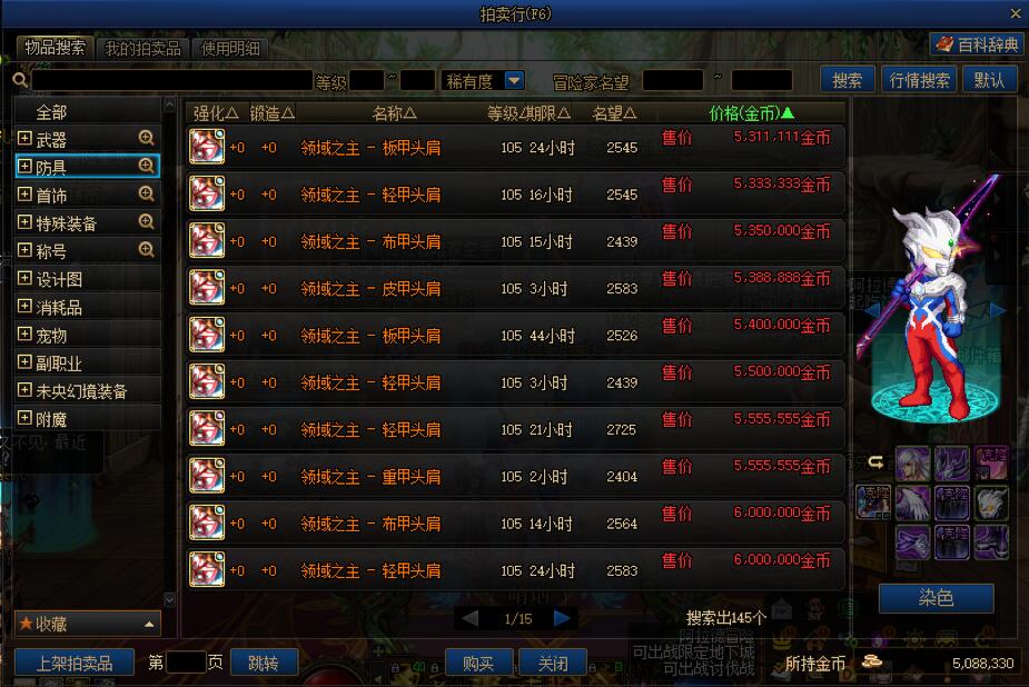最后点击搜索,带有该词条的领域之主传说装备便会被筛选出来,玩家按需购买并分解即可。