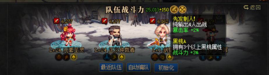 例如,派遣四个纯输出,激活先发制人buff,增加的暴击率为2%。而派遣三输出一辅助组合,激活快治疗一下buff,则增加暴击率1%、生命力1%。