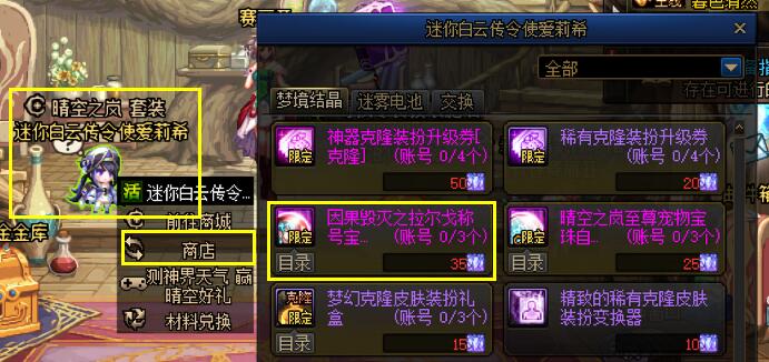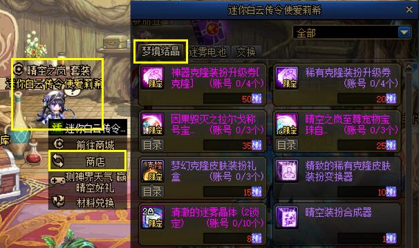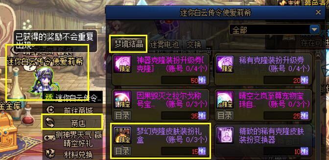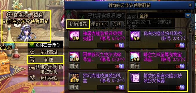 [精致的稀有克隆皮肤装扮变换器]可以使用[梦境结晶]在活动NPC商店中进行兑换。