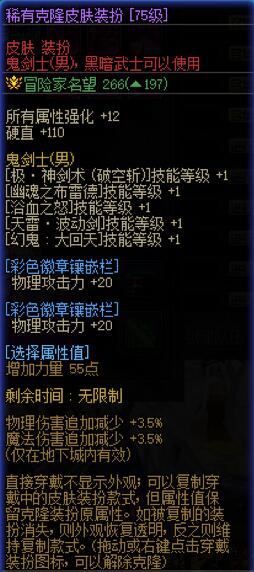 与普通新春皮肤相比,稀有克隆皮肤装扮可以额外提升6点属性强化、55点四维、1级40/45/60/70/75/80级技能等级与197点名望值,以所选技能伤害占比为30%估算,提升率约为2.53%。