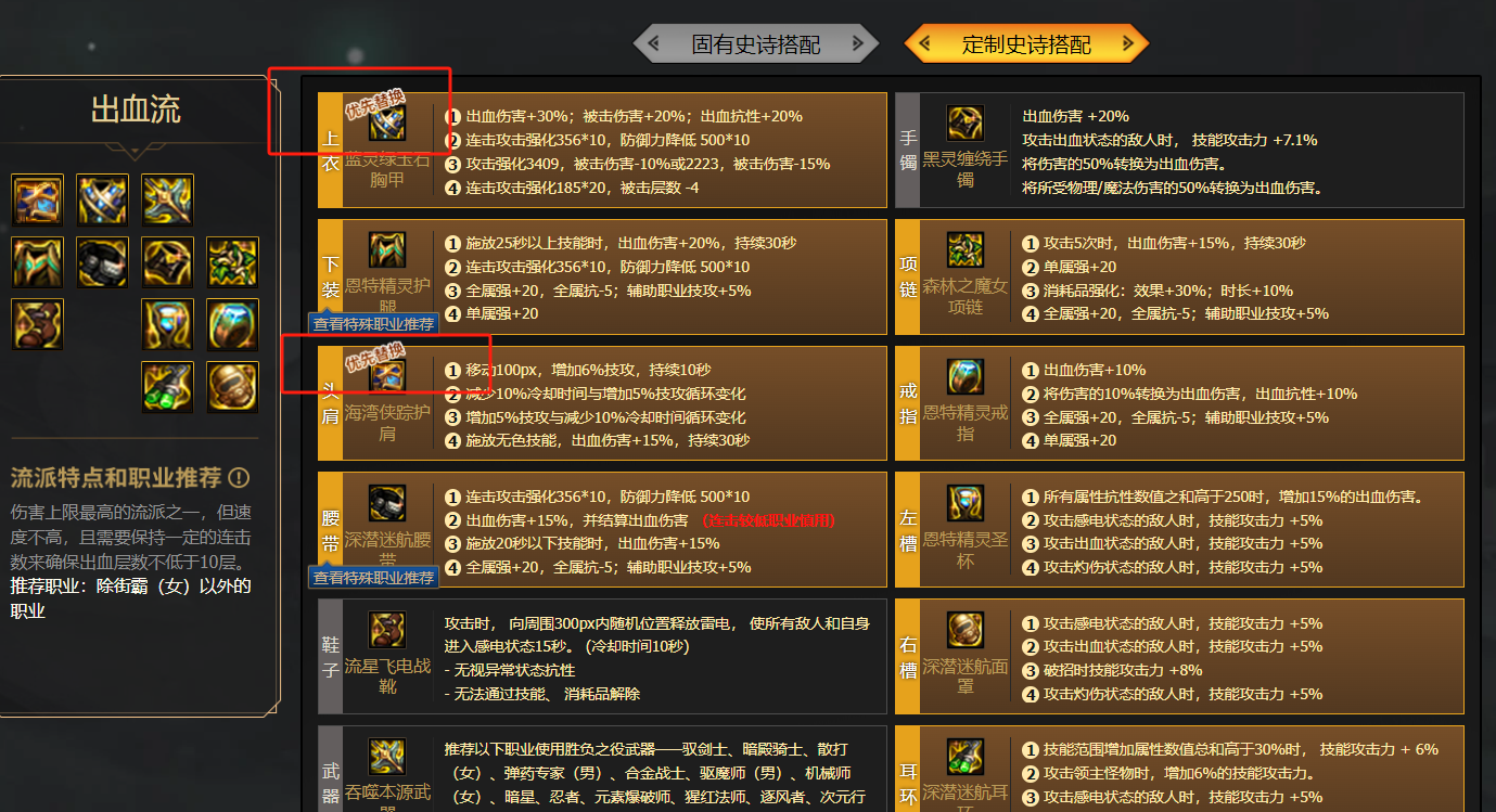 已有核心自定义装备,则查看流派其余部位是否有3词条及以上的自定义装备,最后大百变用来查漏补缺。