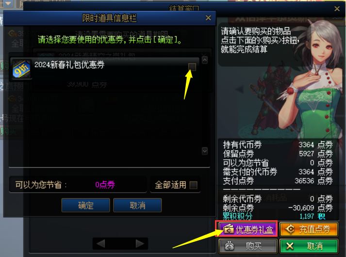 之前买过2023金秋礼包或者已经购买过1次新春礼包的,会赠送优惠券,在购买新春礼包的时候记得使用。