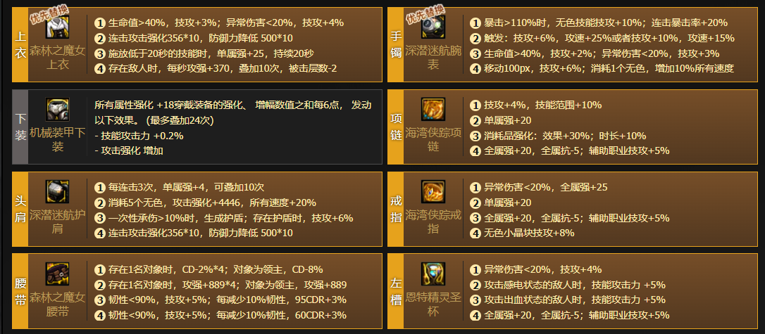 如小百变是深潜手镯,那我们选择的流派基本就是深潜攻速流,那接下来就可以洗森林上衣、深潜头肩、森林腰带等。