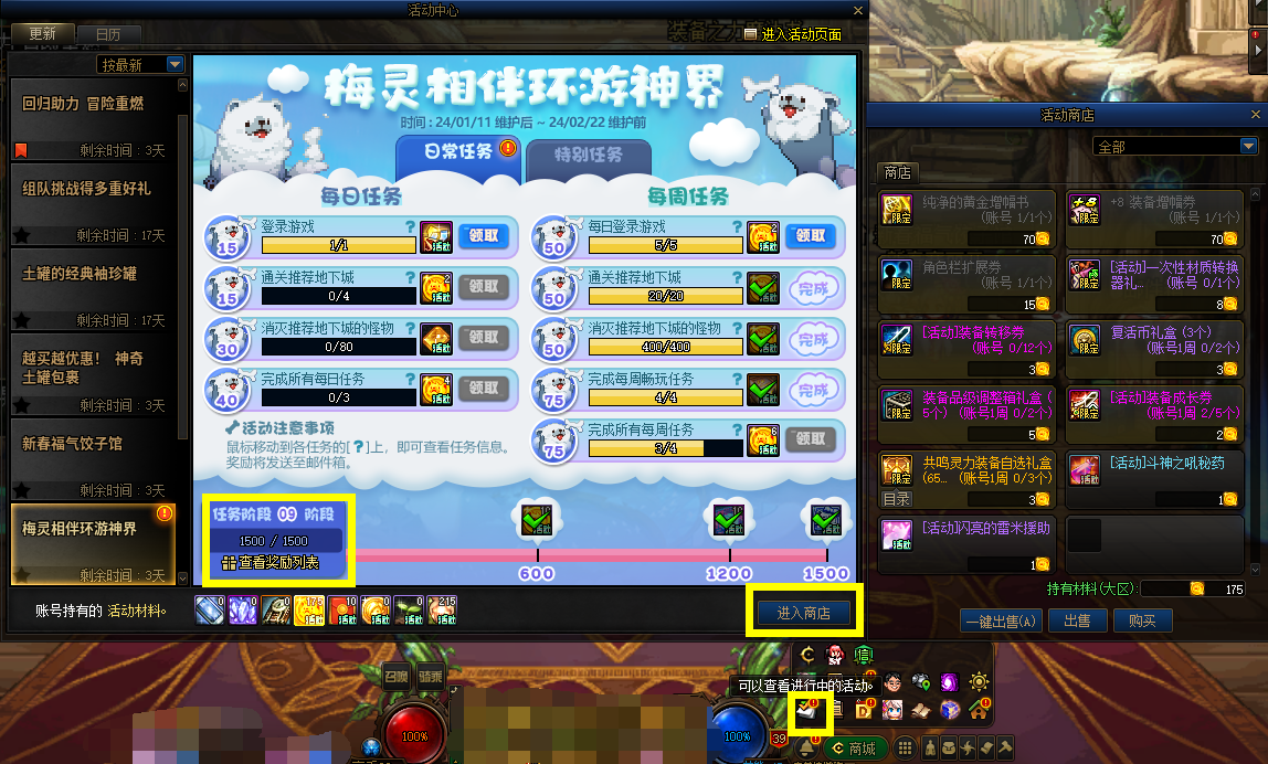 活动页面右下角的活动商店一定要点开看看!别浪费了+8装备增幅券呀!