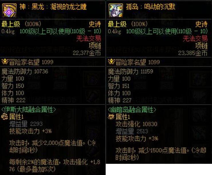 例如与黑龙项链对应的孤岛项链,明显降低了掉蓝速度,黑龙项链每秒掉2000点蓝,而孤岛项链平均每秒掉750点蓝,掉蓝速度仅为黑龙项链的37.5%。