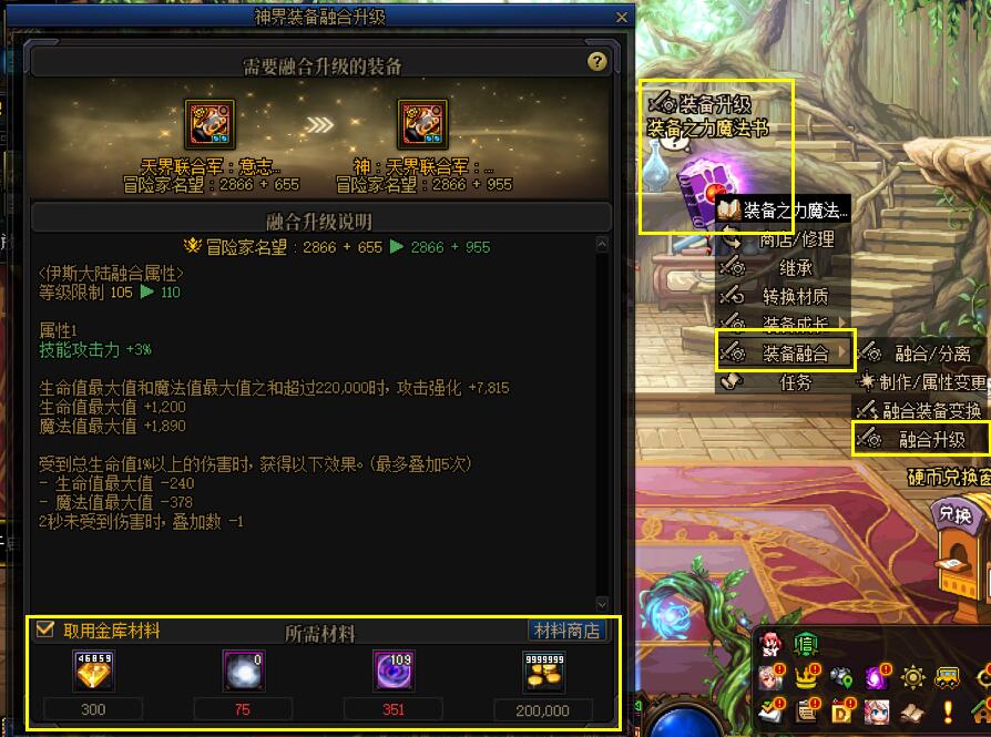 神:伊斯大陆/次元回廊融合装备俗称“假贴膜”,可通过幽暗岛2阶段翻牌直接获取成品,也可以通过[装备融合升级]功能消耗【沉淀的幽紫妖气】将105级首饰/特殊部位贴膜升级为神界贴膜。