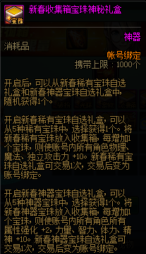 新春特别宝珠自选礼盒同样是当前礼包内角色十分需要的道具之一,如果角色需要多个宝珠,并且只有一套新春礼包的话,建议将新春称号卖掉,去买一个带有宝珠的新春称号,宝珠打在肩膀上,辅助装备部位附魔红腿爱克托宝珠。