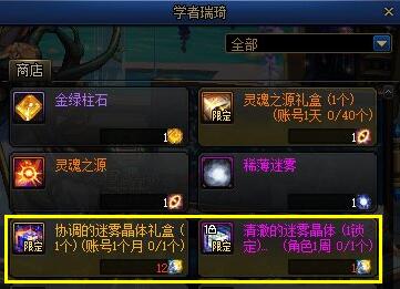 协调的迷雾晶体账号每个月可兑换1个,清澈的迷雾晶体(1锁定)角色每周可兑换1个,是毕业自定义装备重要且稳定的获取途径。