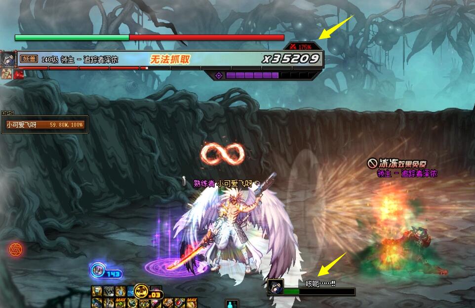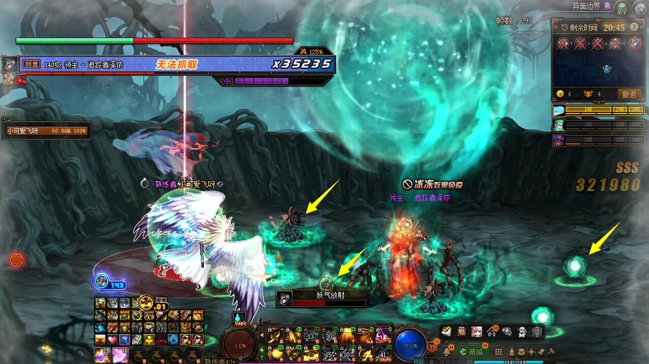“妖气放射”读条开始后,泽侬锁定玩家不断攻击,同时场地中会出现大量小虫子,玩家此时使用普攻击杀小虫子会掉落光球,吃3个光球撞向泽侬可以使机制读条上方的数字减1。