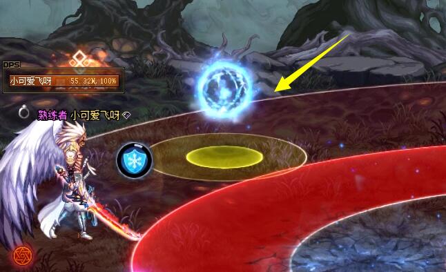 该机制会伴随其他机制一起出现,例如下图的内外圈机制,内外圈机制中仅内圈是安全范围,此时被追踪攻击锁定的玩家需要先走到外圈,使用TAB把追踪攻击丢在不影响内圈安全范围的地方,再跑回内圈躲避内外圈机制。
