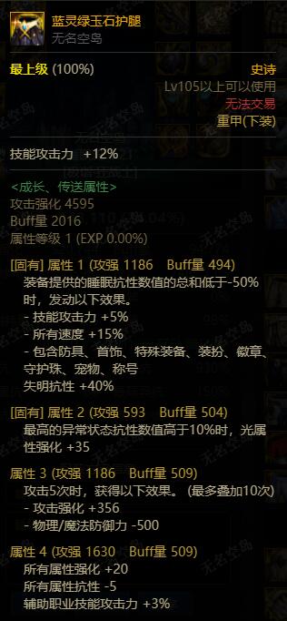 装备睡眠抗性小于-50%时技攻+3%,三速+10%