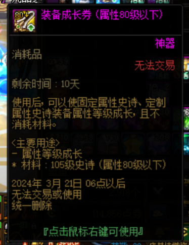需注意,三个商店兑换装备成长券礼盒账号绑定,在每周四删除;开启的装备成长券无法交易,在3月21日删除。建议按照自己包裹中的装备数量和等级情况,按需兑换。