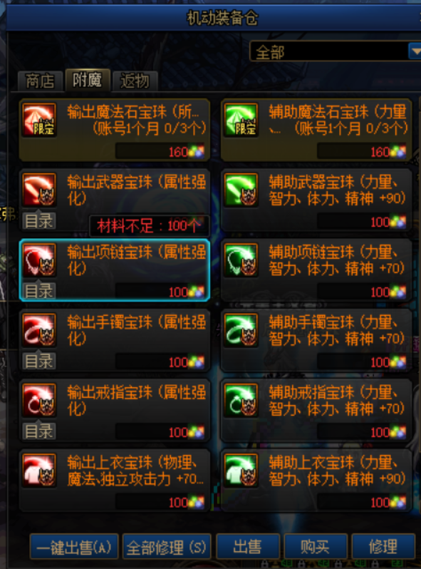 输出/辅助魔法石宝珠:这两个宝珠性价比极高,对不追求极限的小伙伴可以作为准毕业附魔使用。
