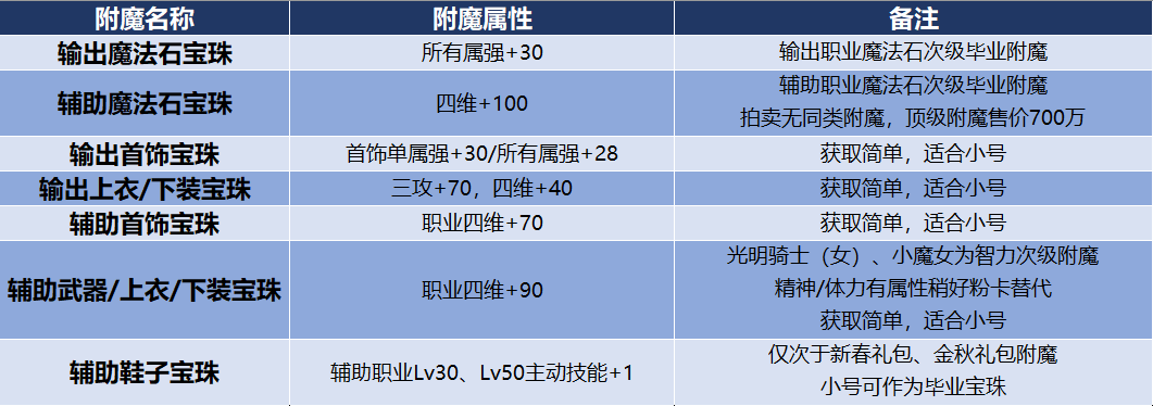 伊斯大陆附魔分为辅助和输出两类宝珠,不少都是次级毕业附魔,对于想起小号亦或是小号缺附魔的小伙伴来说极具性价比。