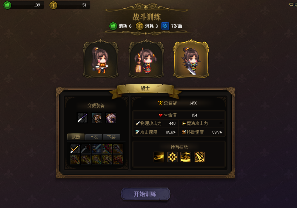 女儿成长到7岁之后,就可以参与战斗模式了,自己的女儿可以格斗家、魔法师和战士,在活动专属副本当中击败怪物拾取经验球,提升等级最后达成通关。需要注意的是副本当中获得的史诗装备只能用来提升活动中女儿的名望值与战斗能力。通关之后会固定获得27点经验值,该操作并不会影响到女儿的最终结局。