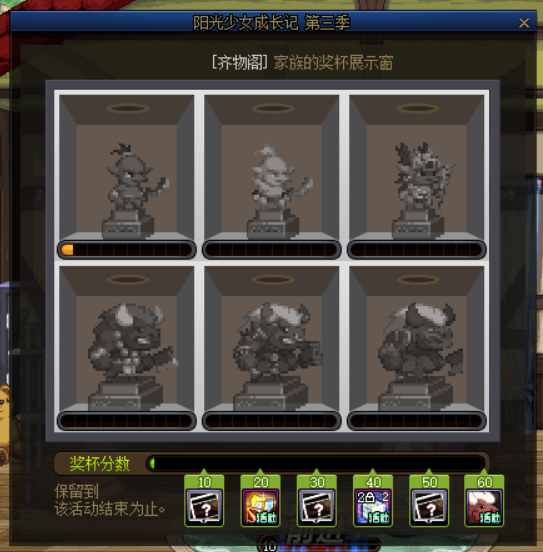 每通关一次可以获得一个奖杯,待收集到10、20、30、40、50、60个奖杯的时候,可以获得雾核礼盒、清澈的迷雾晶体(2锁定)、女儿的动感相册自选卡等奖励。