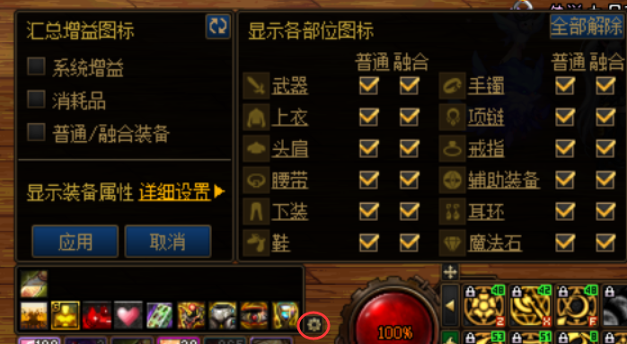 A:鼠标移动到左下方,点击齿轮,可以自行设置需要显示的增益图标。