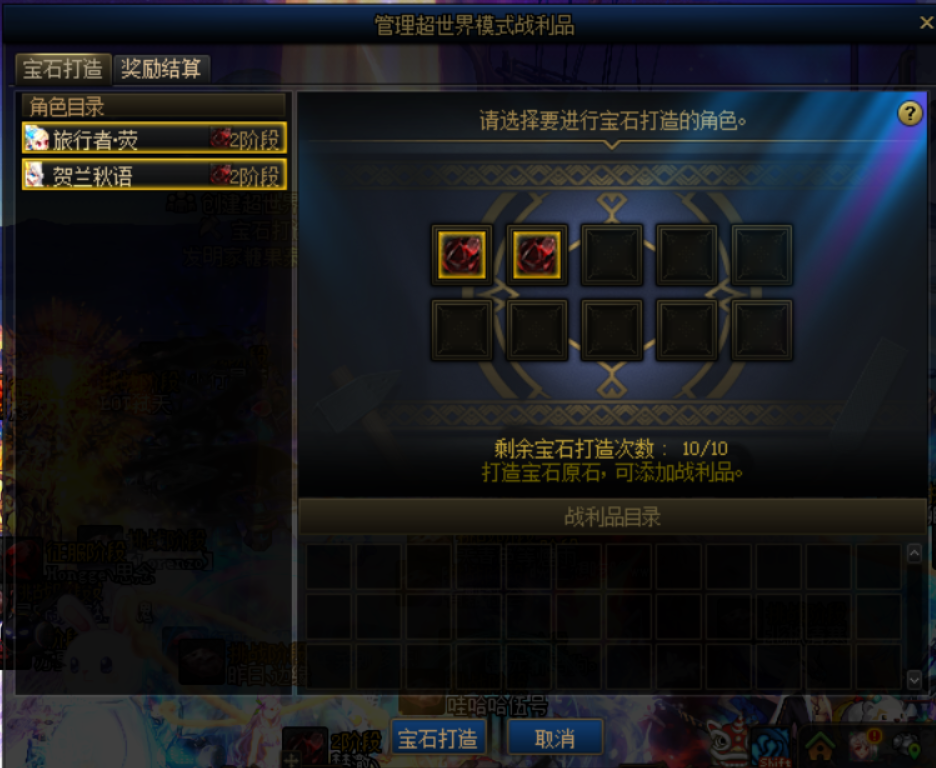 每月最多只能打造10个角色,打造完了所有宝石后,可以在奖励结算页面,选择一个角色领取。