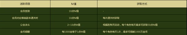* 公会M值可购买公会内容以及在之后更新的地区争夺战中使用。