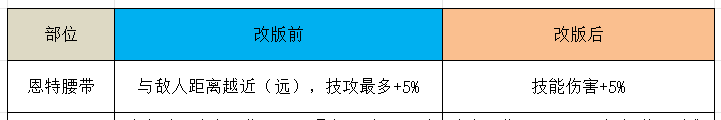 恩特系列的重做很少,恩特手镯的词条重做也没有太多亮点,而且通常不被选择。腰带部位的两个词条的改动其实是删除了“与敌人距离”这个前置条件,确实带来了稳定的提升。