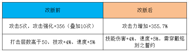 首先,本次改版对词条属性的名字和数值进行了一定的优化。将词条中包含的“技能攻击力”变成了“技能伤害”,同时也将原来“攻击强化”词条数值变为百分比形式。