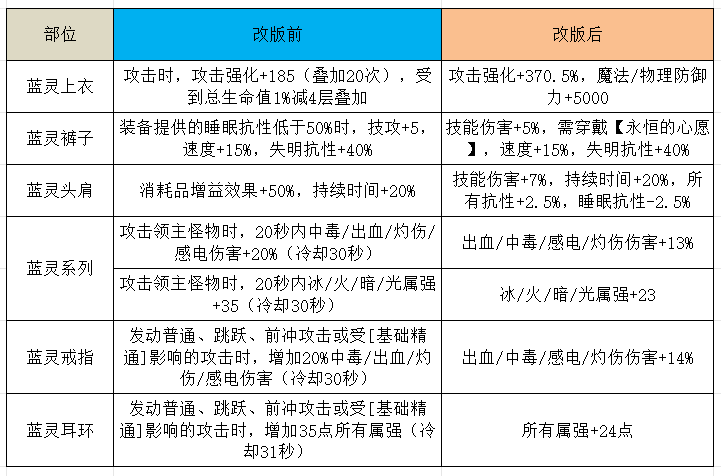 蓝灵系列的改动还挺多的,之前一直被大家所“诟病”的难以常驻的词条这一次都得到了重做优化,全部变成常驻属性。