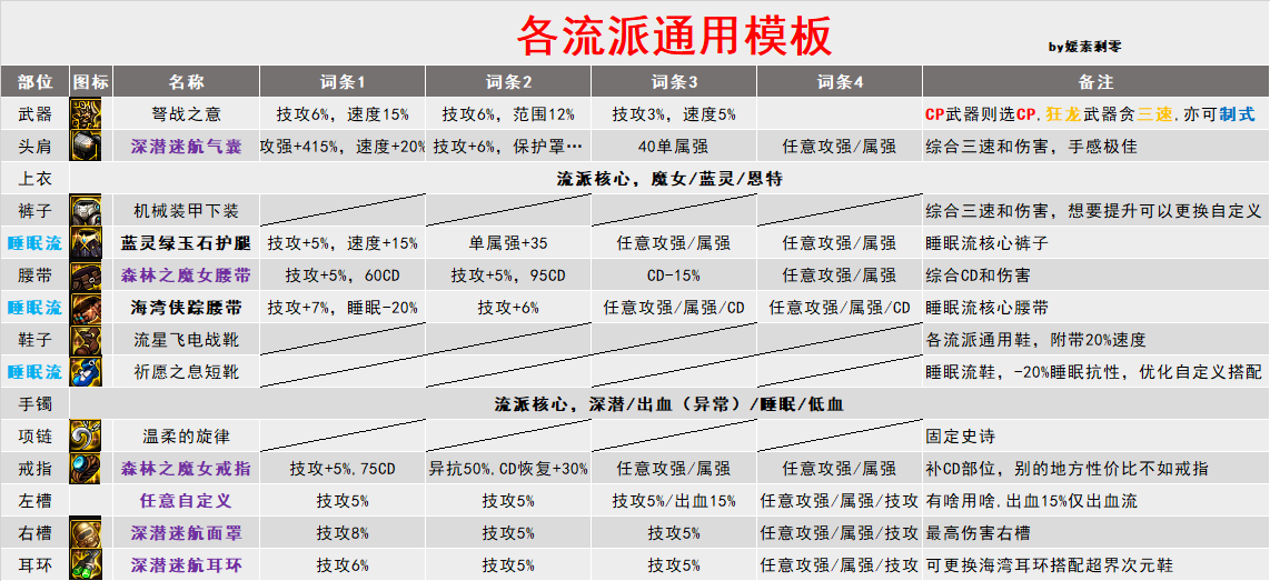 因此以上直伤流派推荐更换成主流的深潜、TP手镯或者睡眠流直伤。