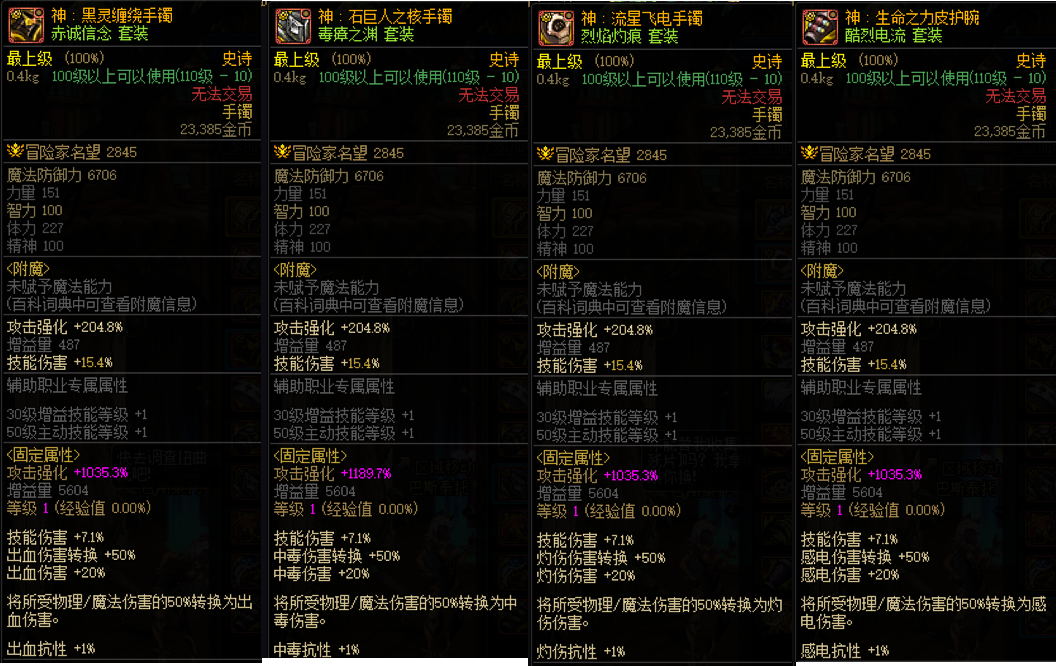 但是这两个流派强度上限低,前期可以过渡完全没问题,后期就需要在自定义逐渐更新换代途中逐步替换,最终更换为深潜手镯或者蓝灵手镯为核心的直伤流。
