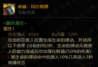 卓越融合装备套装不提供技能攻击力,但是其每件都提供8560攻击强化以及1291buff量。