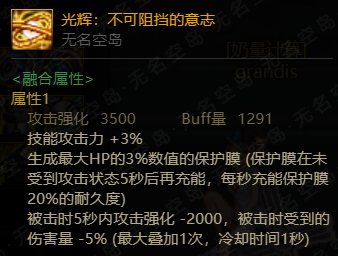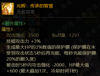 除此之外提供3%技能攻击力以及每件3500攻击强化和1291buff量提升。