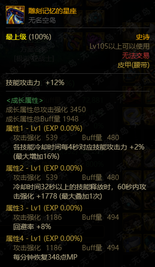 次元回廊腰带“雕刻记忆的星座”会使CD超过32秒的技能攻击力+16%,且释放CD超过32秒技能时会增加攻击强化。纯伤害已经超越“手搓腰”,走手搓流派且主要输出技能冷却时间较长的角色可以考虑使用。