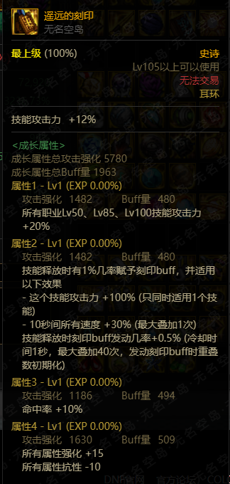回廊腰带也可配合回廊耳环“遥远的刻印”增加觉醒技能伤害,如觉醒技能刚好触发刻印BUFF,则觉醒技能伤害直接翻倍。但是这套搭配伤害不稳定,刻印增伤也比较容易被其他技能触发。