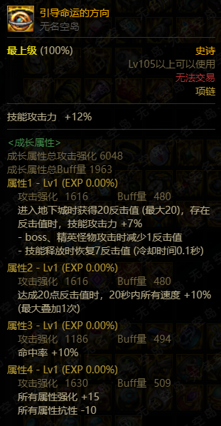 ②回廊项链要释放技能来保持20层“反击值”,从而触发所有速度+10%的属性,要注意回廊项链攻速是否触发,以免影响攻速鞋。