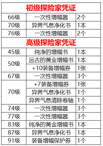 阿拉德探险记可获得海量增幅资源,初级探险家和高级探险家分别获得的资源如下: