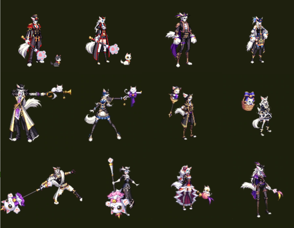 武器装扮每一个系列都有各自的特色,如19/22年新春的未来科技风、19年金秋的职业二觉武器、20年耕耘维京战士斧头、初次登场的名门猫咪系列等。