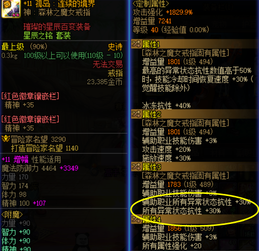 部分职业自带职业被动的抗性,例如阿修罗的100%失明抗性、冰结师的100%冰冻抗性、狂战士暴走后睡眠和眩晕抗性等自带异常状态抗性,除此以外还有变身系,因为职业众多,这里未一一列举,这部分职业可以放心使用魔女戒指,无需其他装备即可轻松触发CD效果。