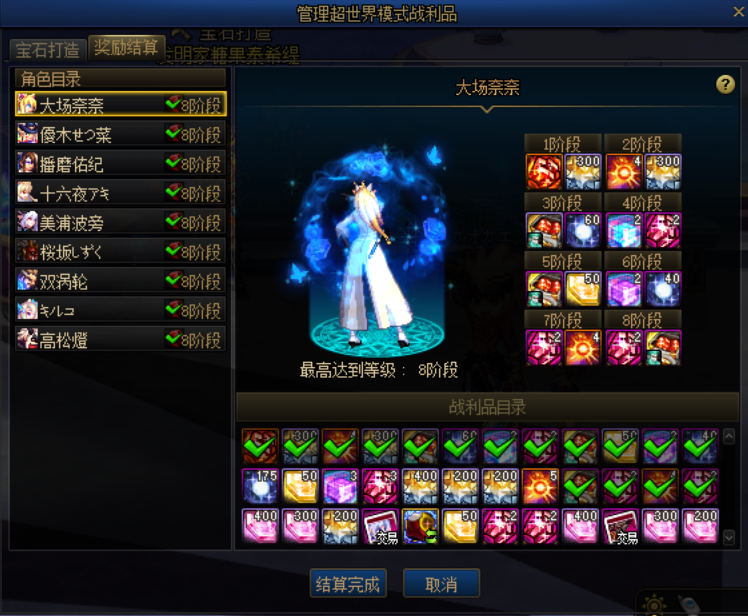 奖励结算也和通关的阶段数有关,每通关1个阶段,可解锁2个战利品格子,这个格子与账号有关,只要账号内有角色通关8阶段,就可以解锁16个格子,与该角色通关的阶段数无关。奖励结算只能领取一次,只能给一个角色领取,在结算时一定要注意不要领错角色啦!