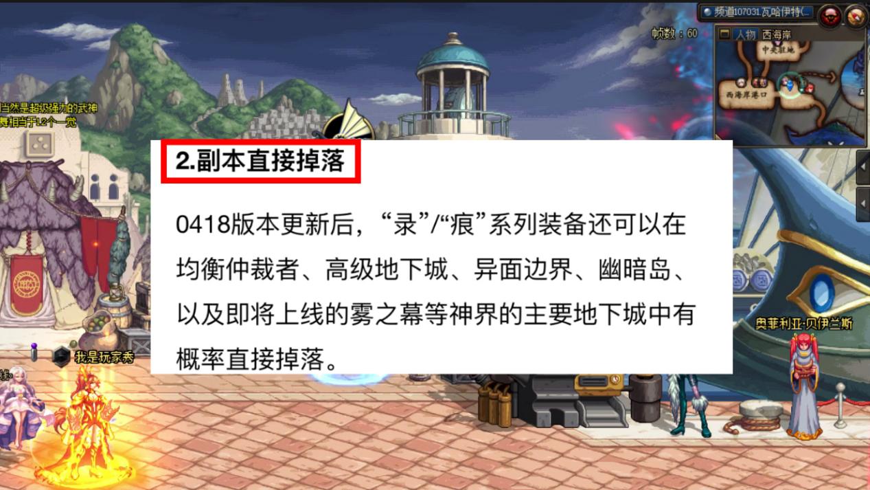 4.18版本更新后,【录/痕系列装备】,在【均衡仲裁者、高级地下城、异面边界、幽暗岛、雾神妮】等神界的主要地下城中,有概率直接掉落成品!